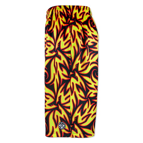 From the EU, Tobias Ludescher, Austrian artist, a.k.a. LUDSCH, has collaborated with HXB to release great new pants! He is the exclusive photographer of Europe's most famous snowboard movie, “PirateMovie Production”. LUDSCHI is a true creator who does both hand and digital drowning. He supervises everything from movie art direction to package design in multiple pieces. He offers his art work to PirateMovie Productions, as well as Red Bull, Burton, Union, Dragon Optics, and Element Skateboards. This time, HXB arranged the color scheme and layout of his original pattern “MANDARA” and dropped it into the basketball shorts. Mono Spiral is a black-and-white finish with a spiral pattern. Look carefully, the front is open, and the back is a closed whirlpool. Fire Zoom Bermuda is fire colored, with zoomed up triangular (Bermuda) patterns. Grass Wide Bermuda is grass colored, with wide detailed triangular (Bermuda) patterns. These all are created by our session. Pick the new sensations that meet your taste and try them on! 様々なグラフィックをメッシュショーツで表現したHXBの人気シリーズ。