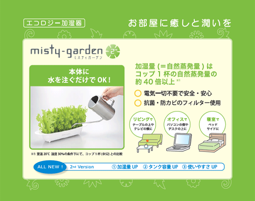 ■keyword:ミズティガーデン/ミスティガーデン/ガーデン/ミスティガーデン/ガーデン2nd/新商品/ビビット/アップルグリーン/ラピスブルー/緑/紺/アロマオイル付き/知っとこ!/はなまるマーケット/めざましテレビ/新型インフルエンザ対策/パンデミック対策/豚インフルエンザ対策/鳥インフルエンザ対策/季節性インフルエンザ対策/ウィルス対策/エコ/加湿器/加湿ポット/ミスティ・ガーデン/ミスティーガーデン/Misty garden/ミクニ/Mikuni/口コミ/クチコミ/話題/大反響/大好評/大人気/大評判/