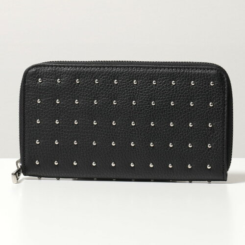 マットな質感の上質なレザーにスタッズ装飾が目を引くラウンドファスナー長財布。