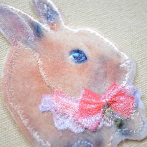 ベルベット地のような肌触り! サイズ(約) タテ6.6cm×ヨコ4.5cm カラー ベージュ/ピンク/ブラックほか デザイン うさぎのイラスト 備考 シール・アイロン両用 ★