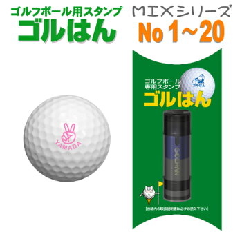 ゴルフボールスタンプ・ゴルはんMIXシリーズ No1〜20でマイボール名入れで誤球防止にお役にたちます 補充インク付/ギフト プレゼントに最適 ゴルハン ごるはん