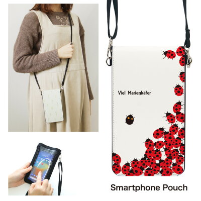 No209 ウジャウジャ・てんとう虫 スマホポーチ スマートフォンポシェット ポシェット iPhone Android タッチ操作対応 ショルダーベルト 肩掛け 斜め掛け ポーチ 合皮 帆布 ジャケット 昆虫 個性的 ユニーク テントウムシ d:ani | 携帯ポーチ ショルダー 入れたまま 縦型