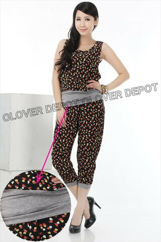 【24h限20%Pバック!+10%OFFクーポン有!】即納 オールインワン 生地 切替 服 レディース サロペット サロペ 上下セット タンクトップ ノースリーブ 7分丈 花柄 サルエルパンツ パンツ 花柄ロンパース ロンパース 春 夏 コンビネゾン スウェット パンツ メール便 送料無料