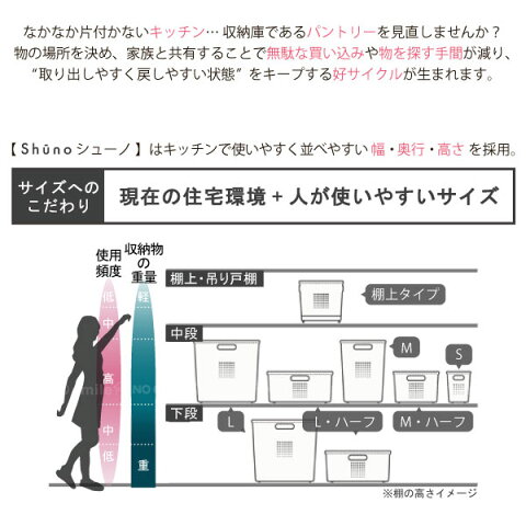 キッチン収納の要、パントリーを使いやすく整理整頓する収納バスケットシリーズ「shuno(シューノ)」。